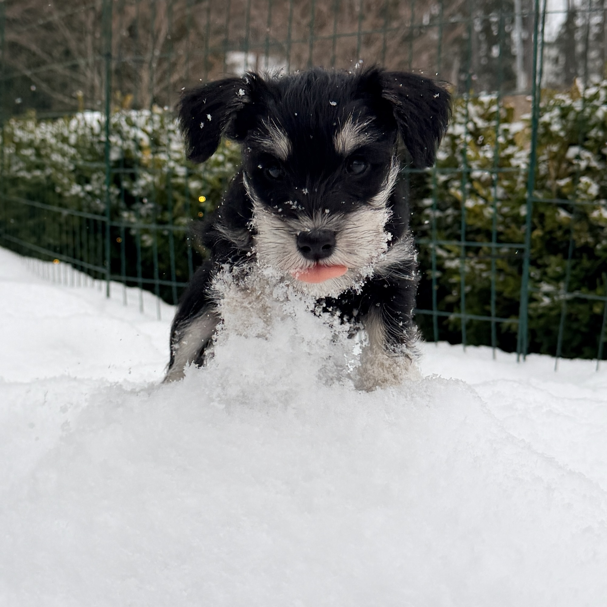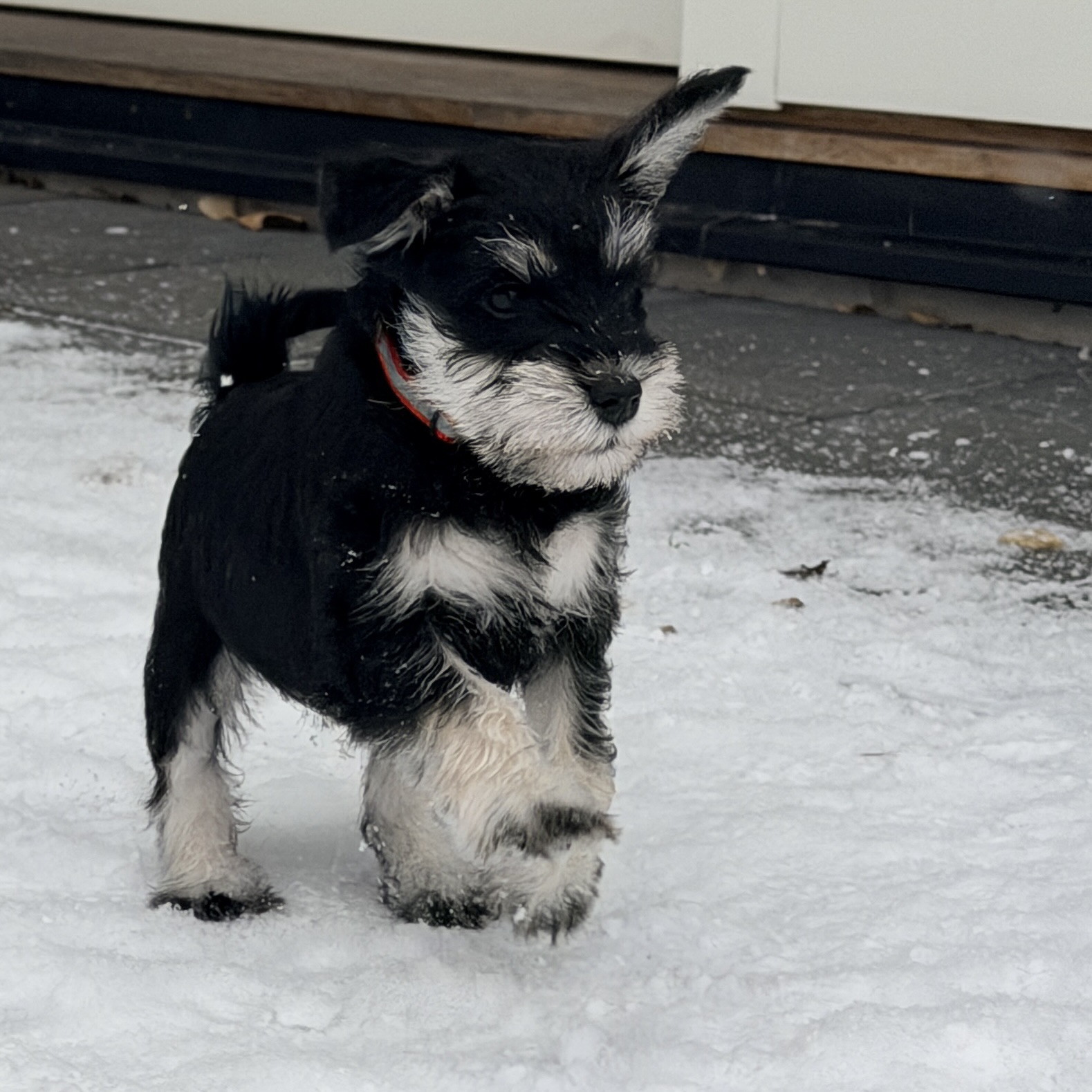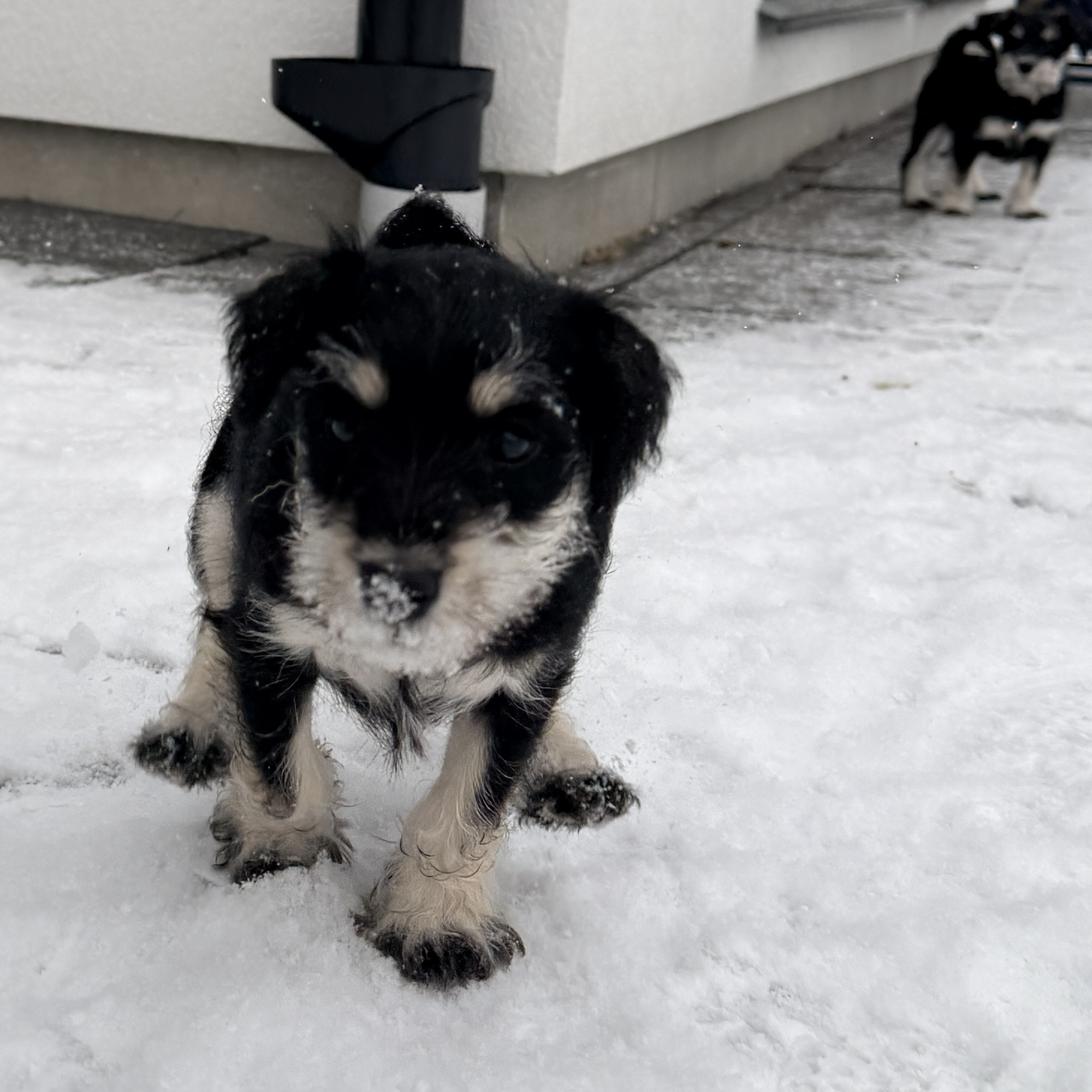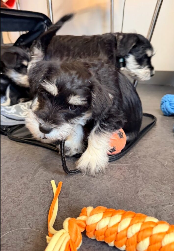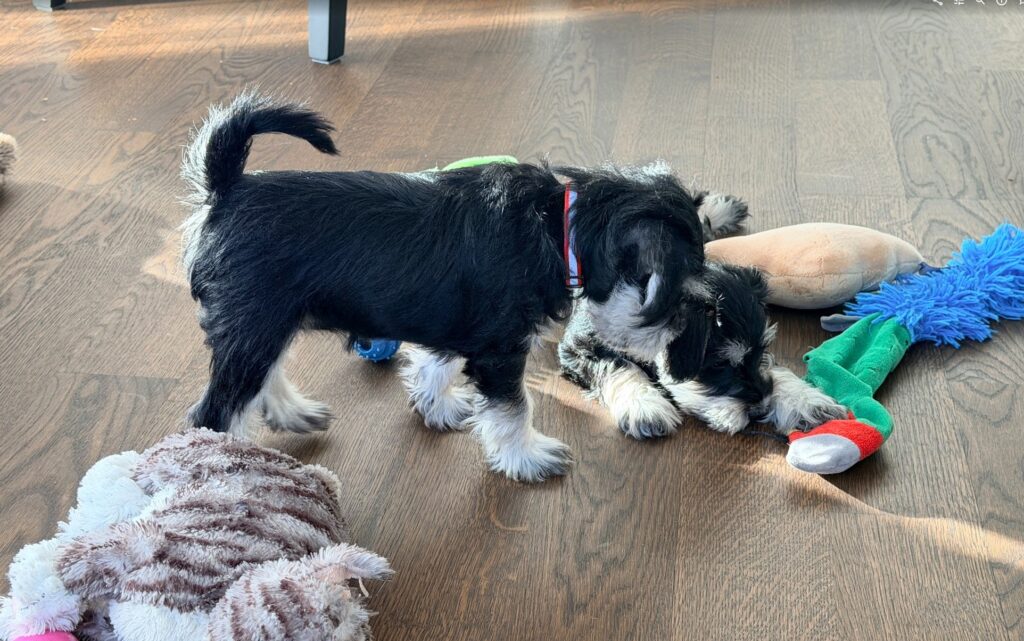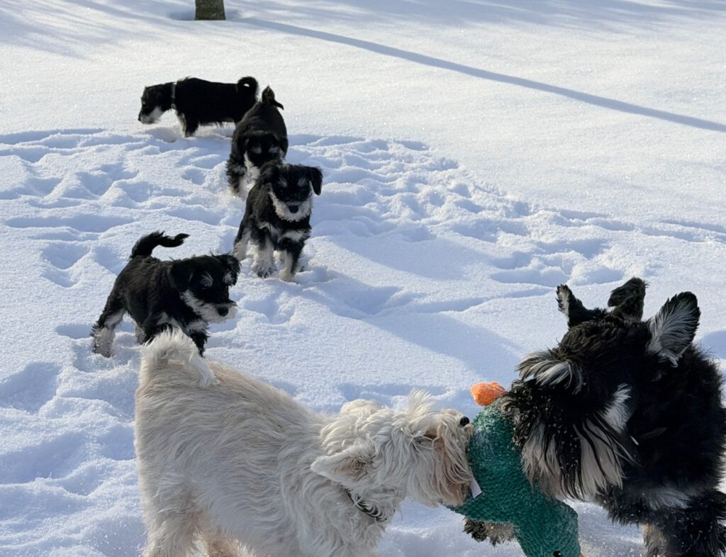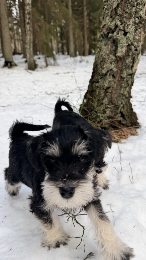 Valparna är nu 9 veckor och dagarna är fyllda av nya upplevelser. På de senaste bilderna syns de ute i skogen där de nyfiket utforskar nya dofter och underlag, hemma där de busar både ute i snön och inne på golvet, samt hos veterinären där de varit duktiga och fått sin första vaccination. Allt för att de ska lära känna nya dofter, ljud och miljöer. Alla valpar som är lika till både utseende och mentalitet lär sig nyfiket nya saker.