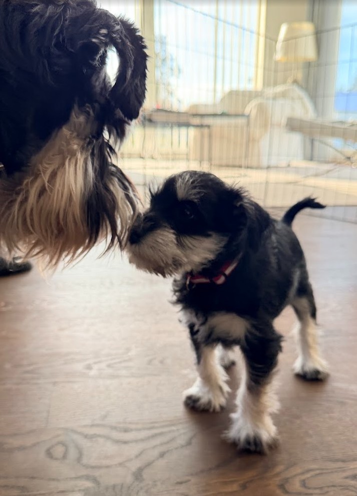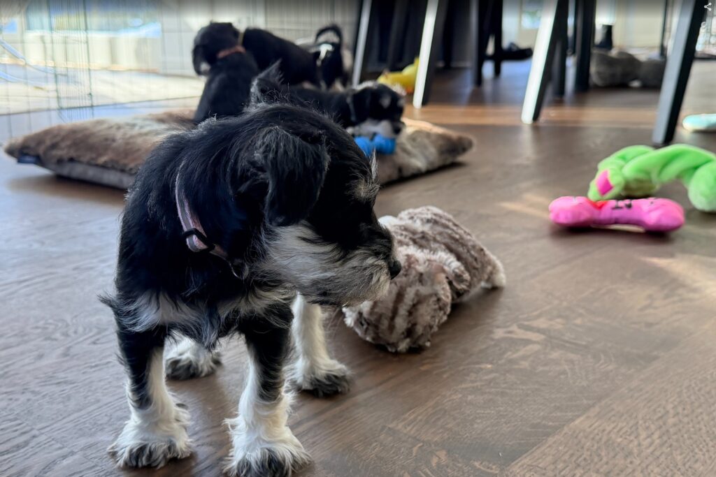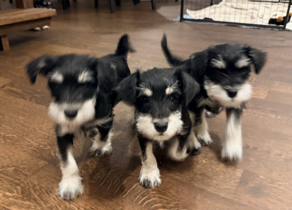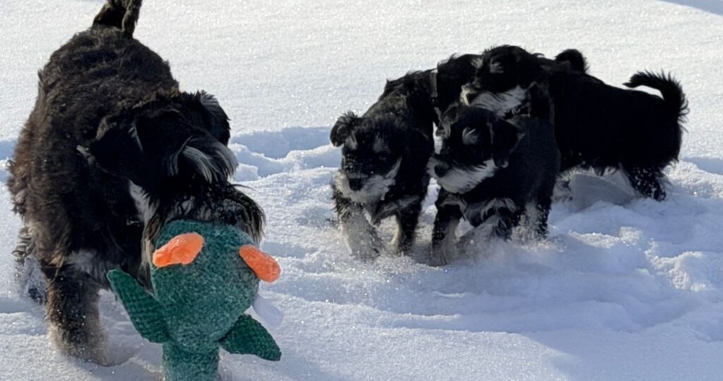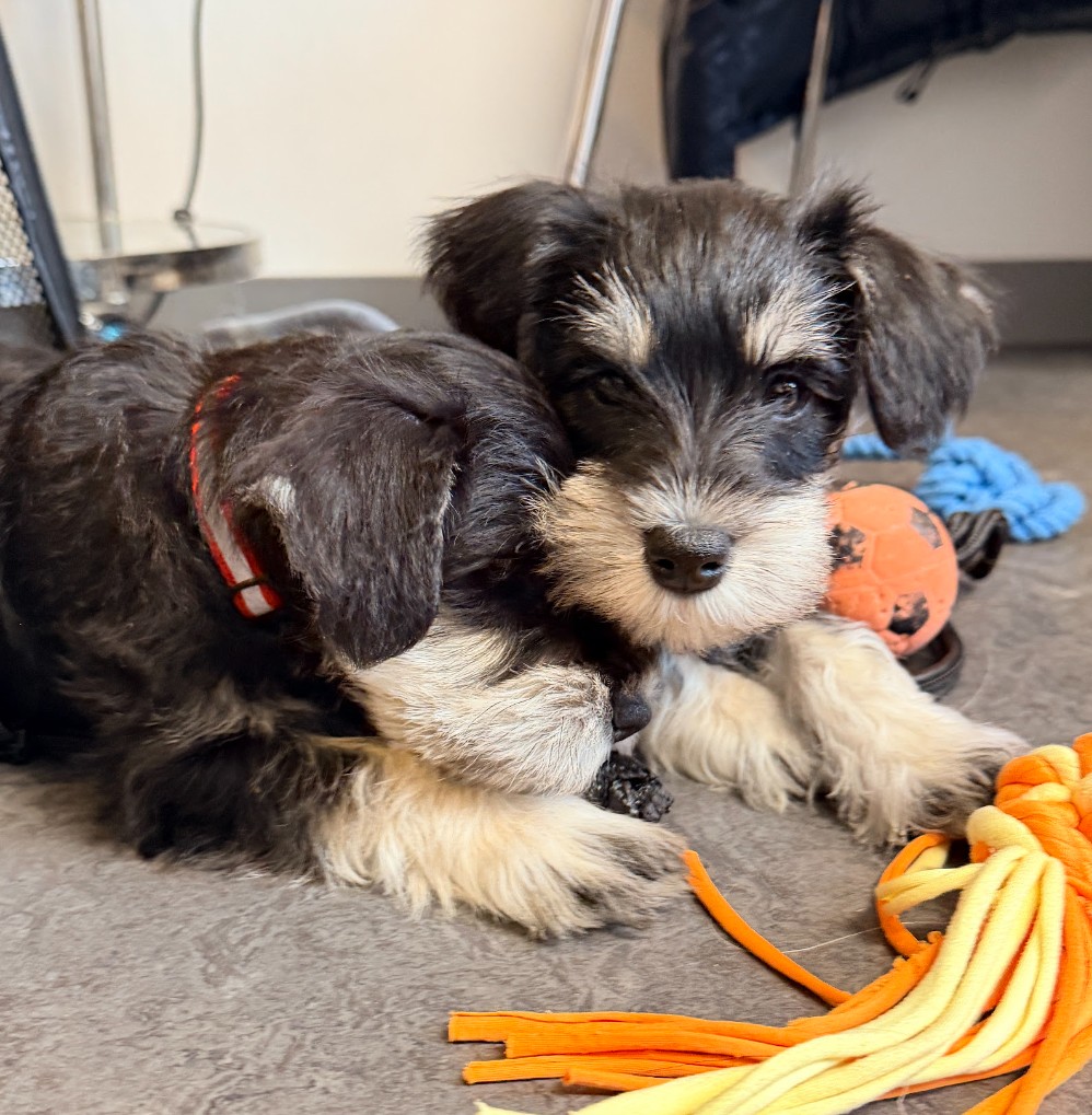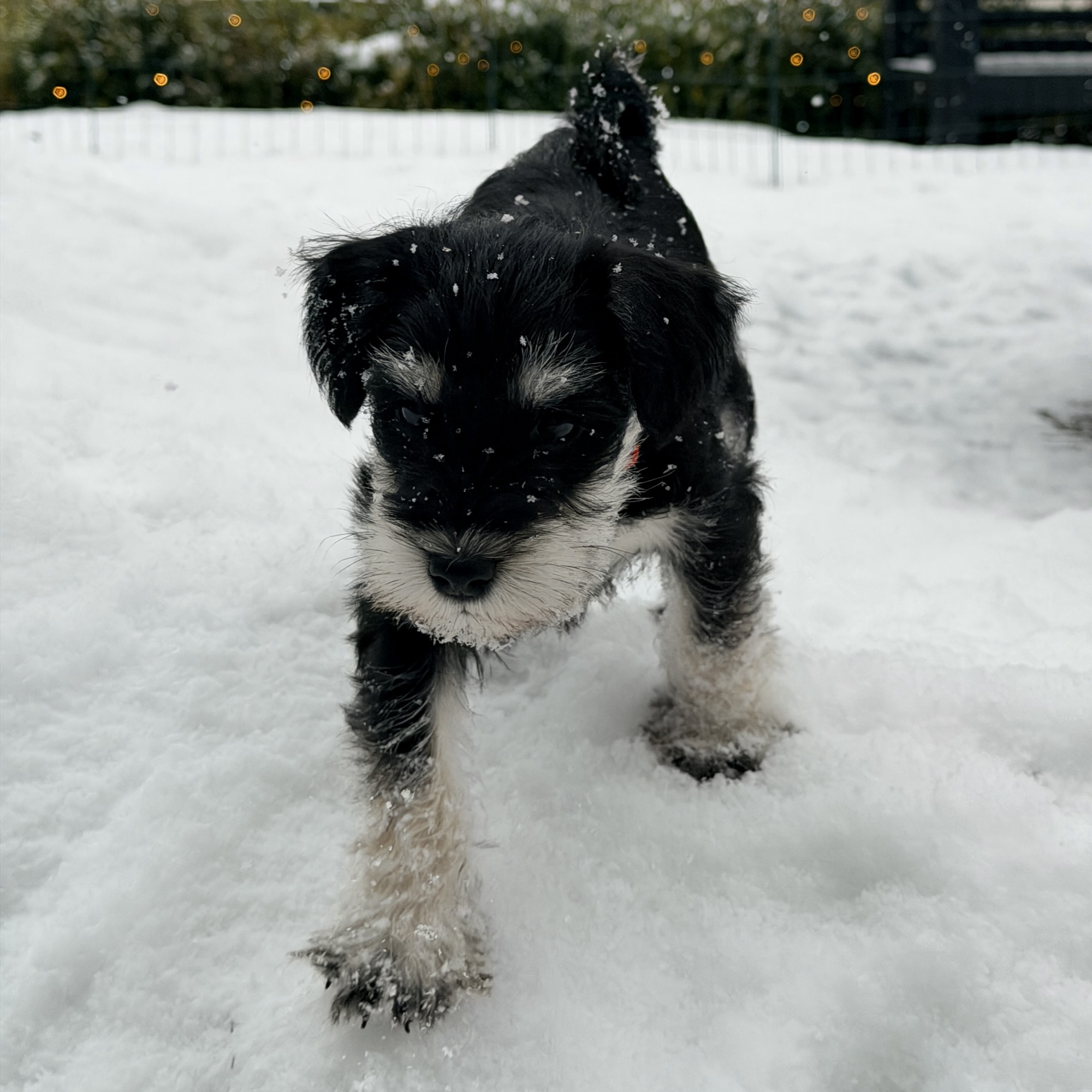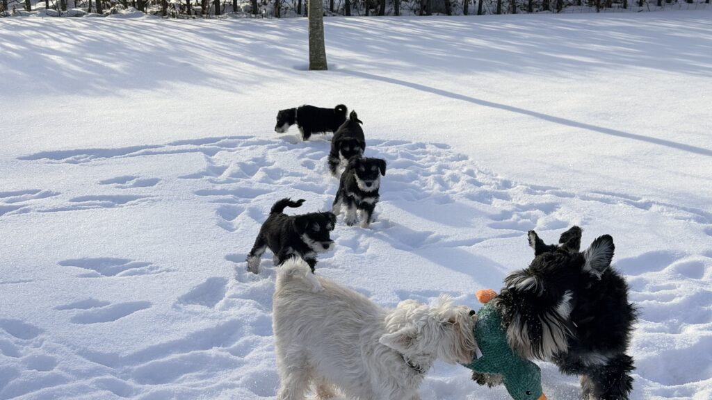 Valparna är nu 9 veckor och dagarna är fyllda av nya upplevelser. På de senaste bilderna syns de ute i skogen där de nyfiket utforskar nya dofter och underlag, hemma där de busar både ute i snön och inne på golvet, samt hos veterinären där de varit duktiga och fått sin första vaccination. Allt för att de ska lära känna nya dofter, ljud och miljöer. Alla valpar som är lika till både utseende och mentalitet lär sig nyfiket nya saker.