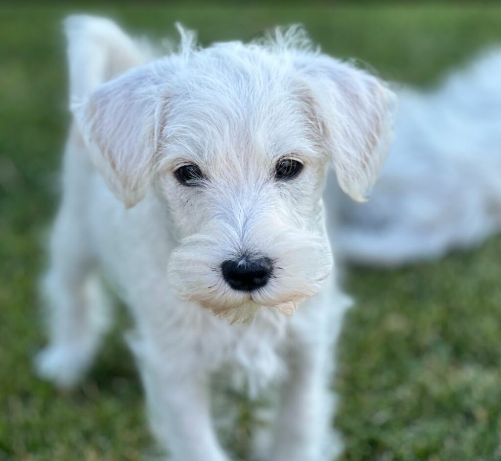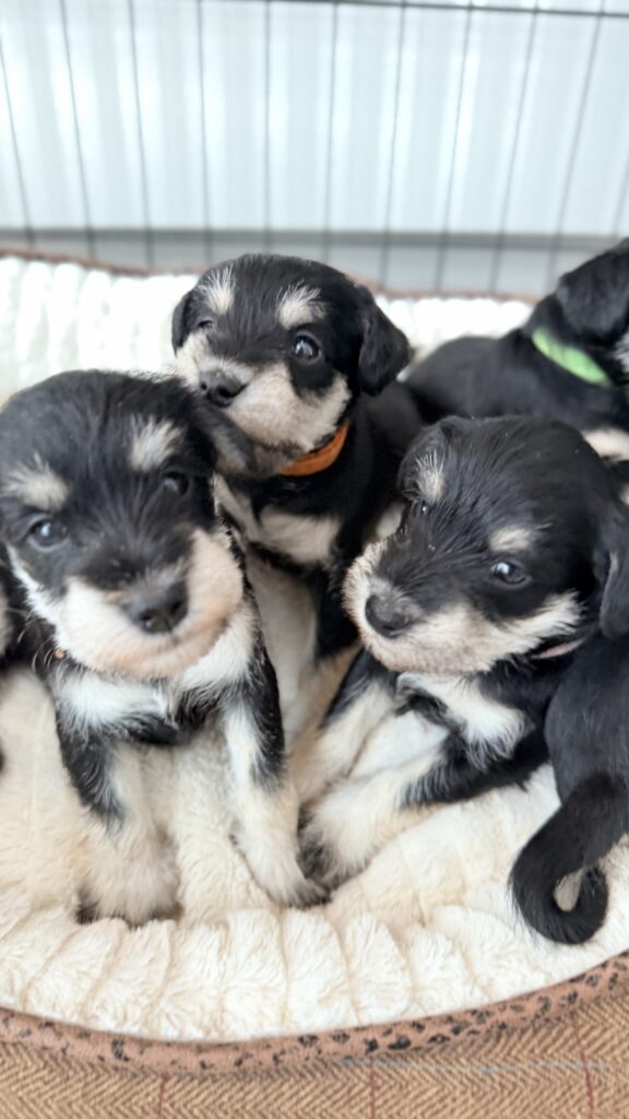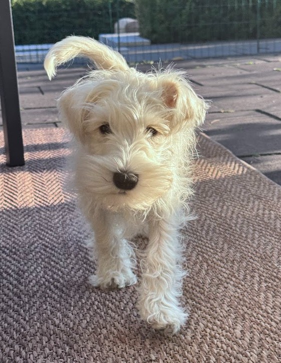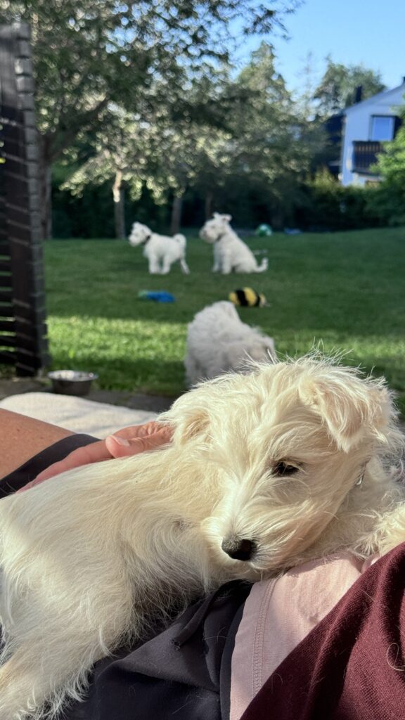 29/8, 2025: Här är den vita kullen. Det finns ingen valp ledig just nu, alla är reserverade eller levererade. Vill du ha en dvärgschnauzer längre fram, kan du alltid ringa (070-753 20 20)