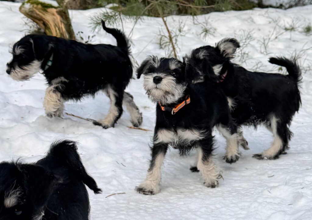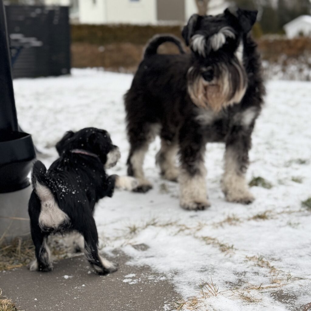 Här hemma är det full fart i vinterlandskapet. Våra valpar har nu fyllt 7 veckor och har fått upptäcka snön på riktigt – något som snabbt blivit dagens höjdpunkt. Med nyfikenhet och stor entusiasm kastar de sig ut, gräver med små tassar och jagar varandra genom den vita pudern.
